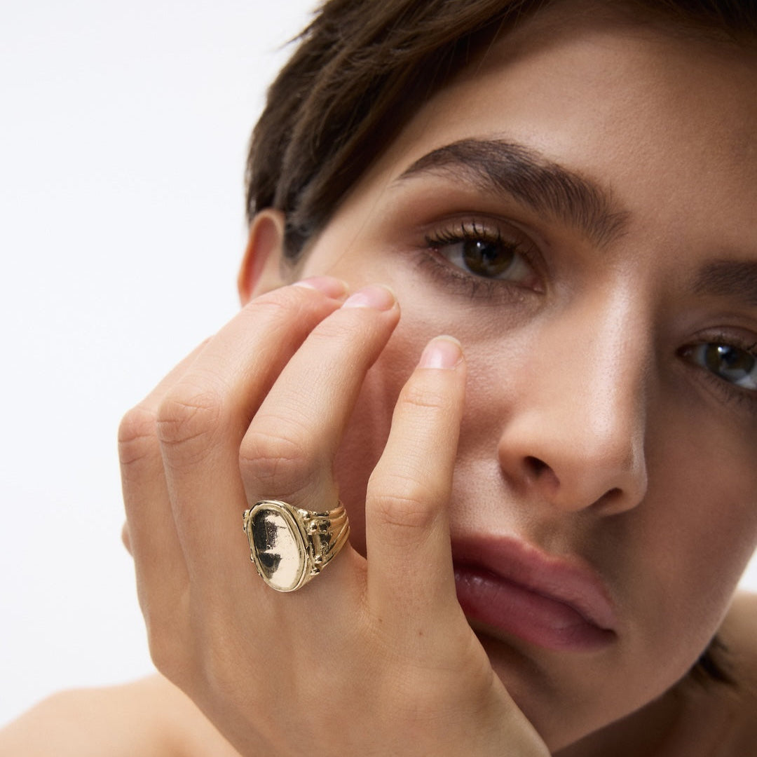 Sterling silver signet or 14K Gold ring with oval face